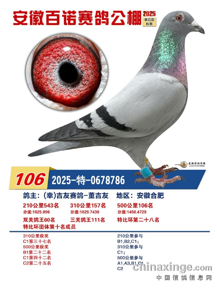 安徽百诺赛鸽中心:决赛正奖鸽赏析(106名-120名)