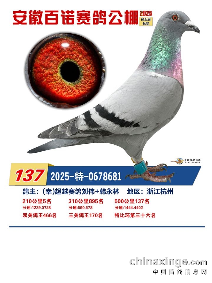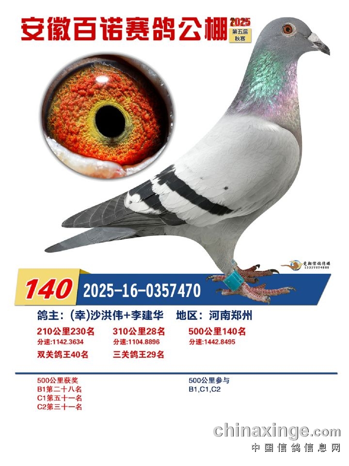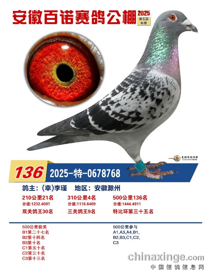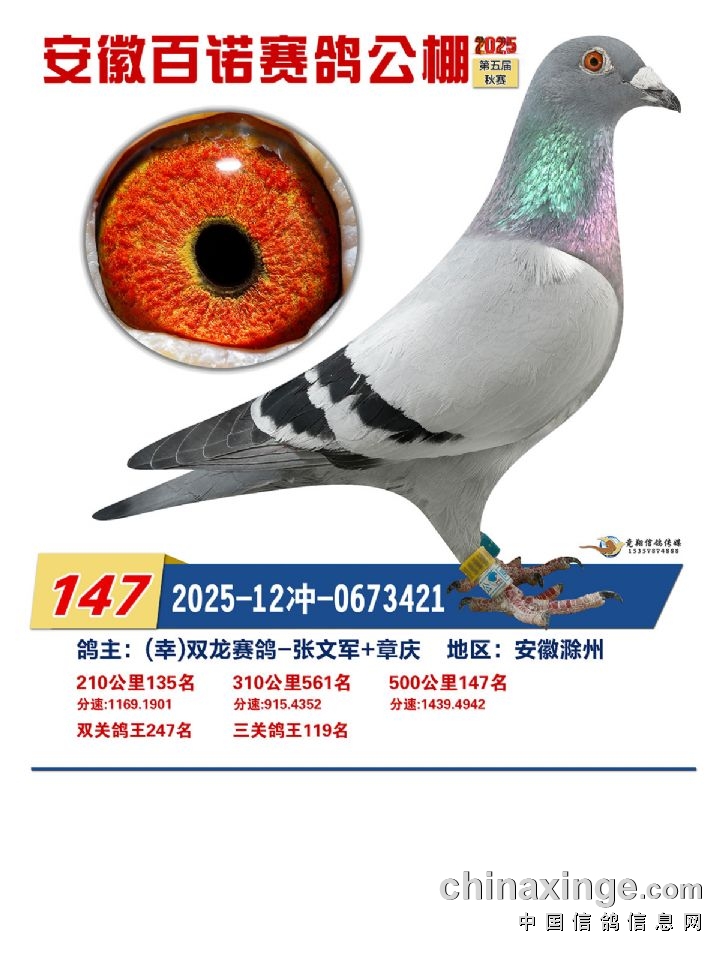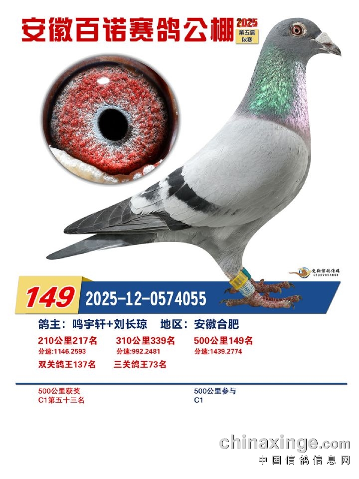 安徽百诺赛鸽中心:决赛正奖鸽赏析(136名-150名)