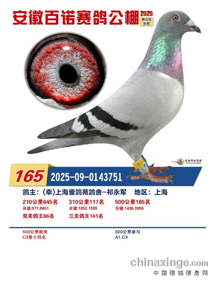 安徽百诺赛鸽中心:决赛正奖鸽赏析(151名-165名)