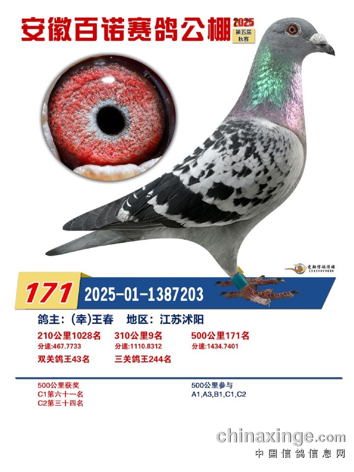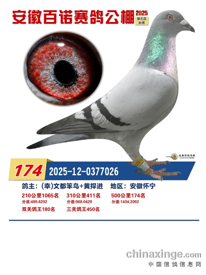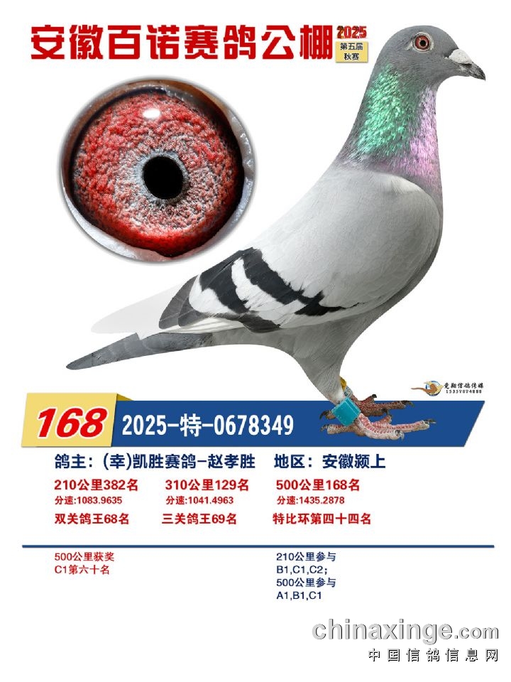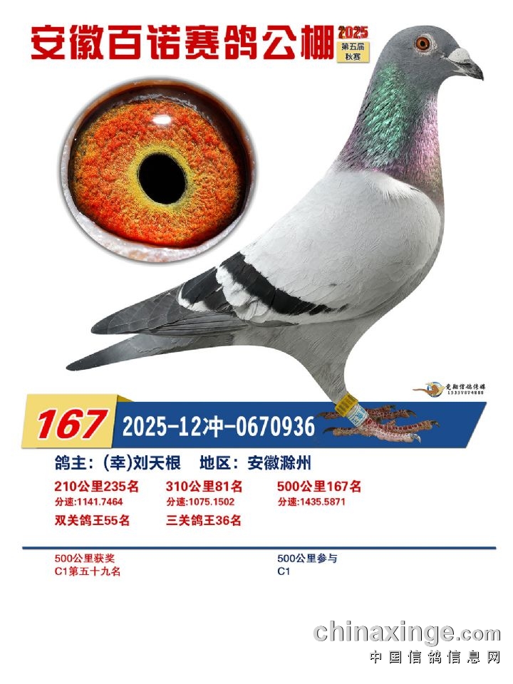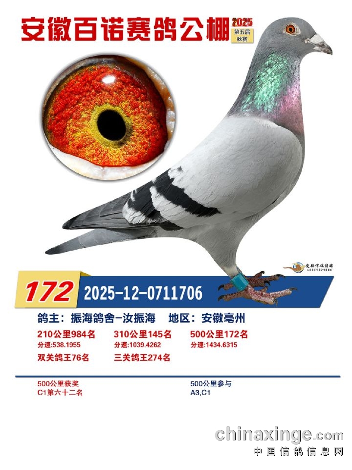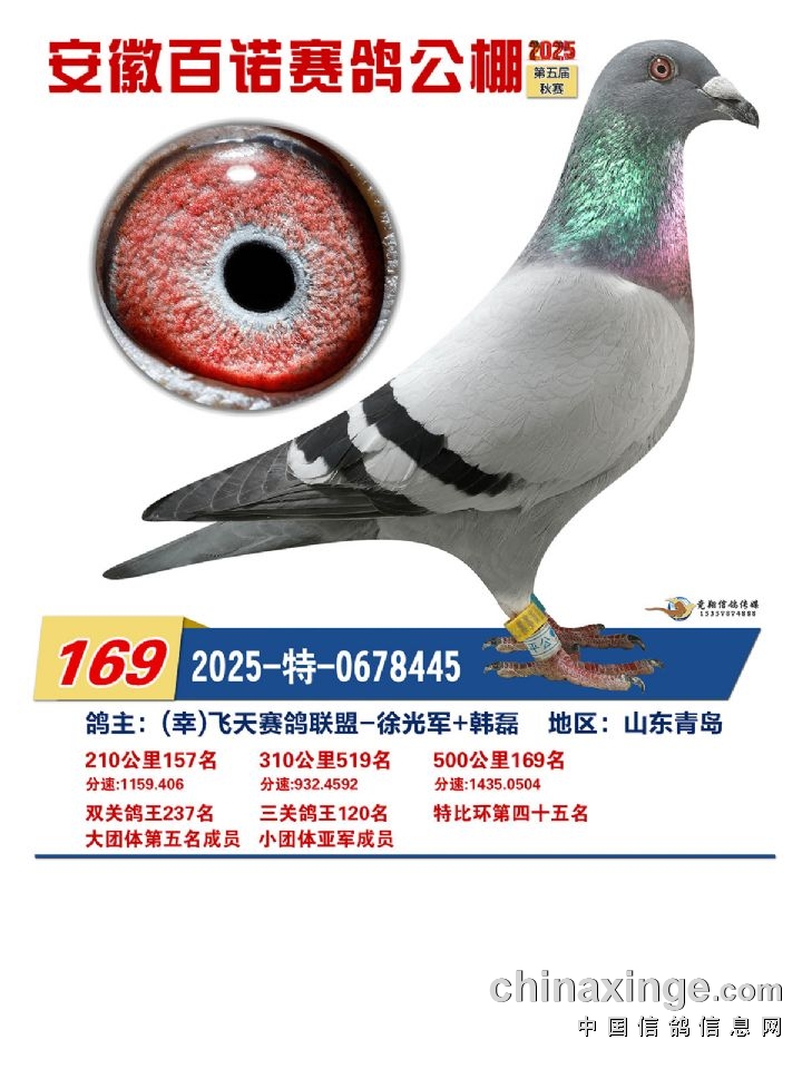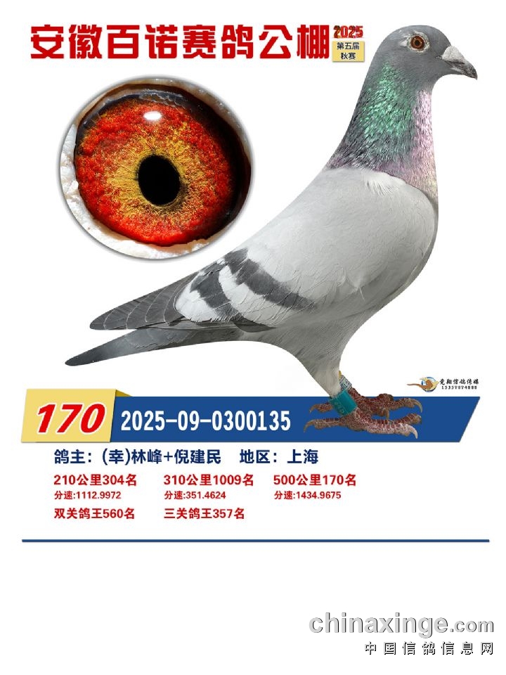 安徽百诺赛鸽中心:决赛正奖鸽赏析(166名-180名)
