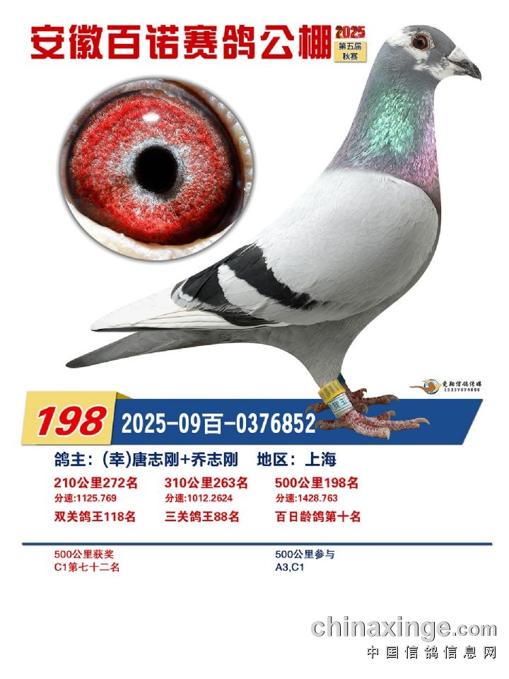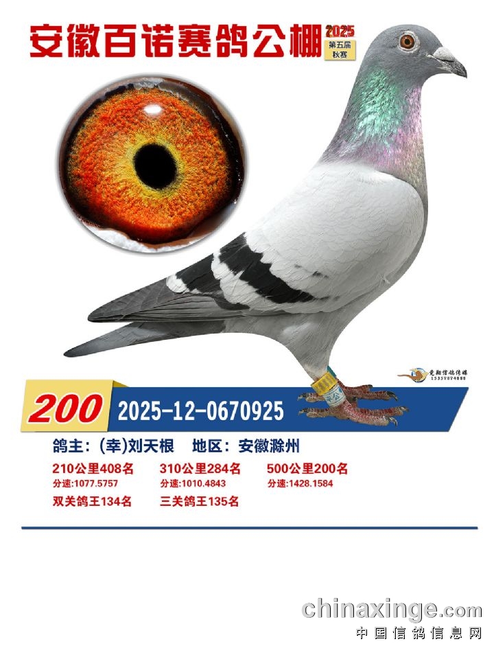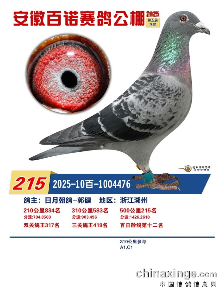 安徽百诺赛鸽中心:决赛正奖鸽赏析(196名-210名)
