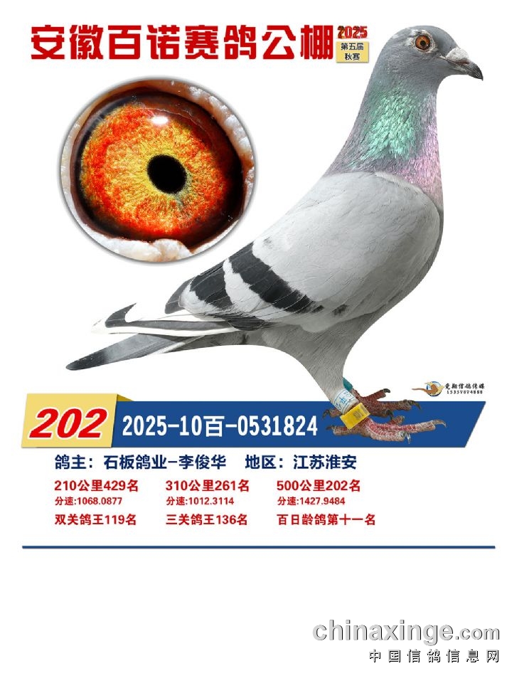 安徽百诺赛鸽中心:加站赛获奖鸽赏析(11名-19名)