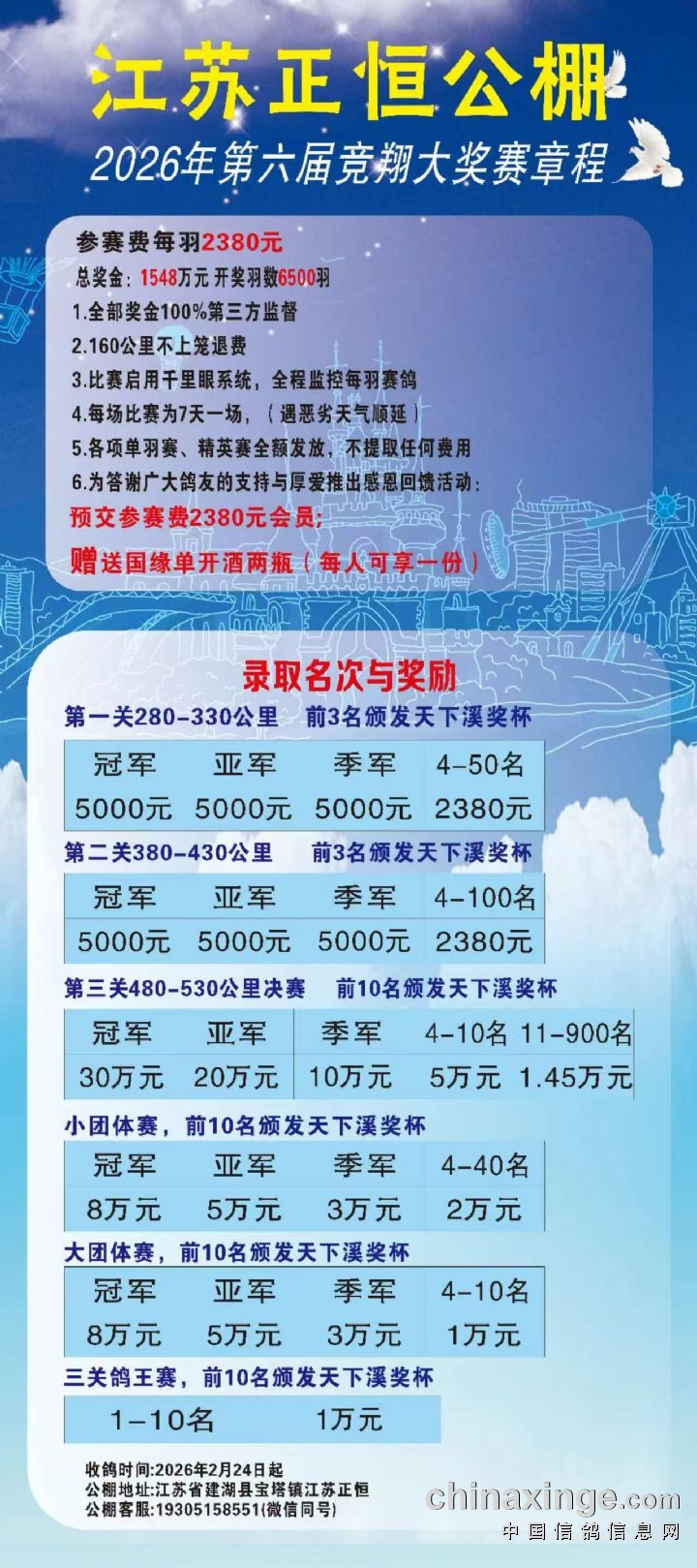 1、参赛费依人民币计价,境外赛鸽参赛费依当日汇率换算成等值的人民币:2380元。