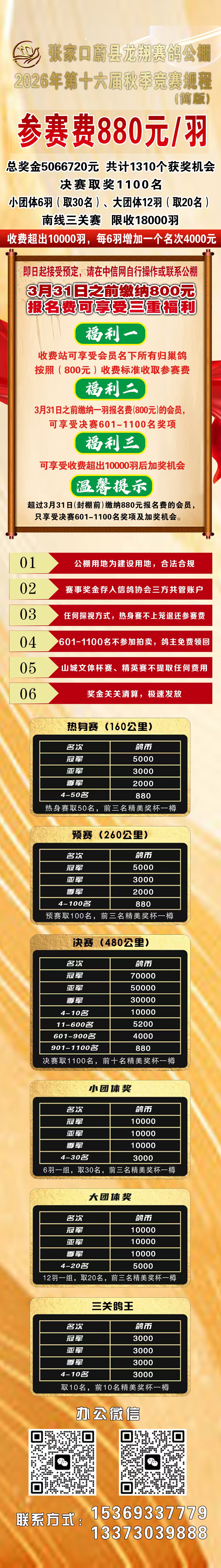 张家口蔚县龙翔赛鸽公棚2026年第十六届秋季竞赛规程