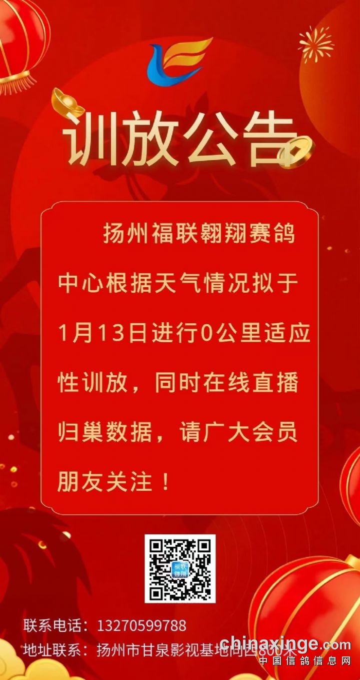 扬州福联翱翔1月13日0公里训放扫描直播网址