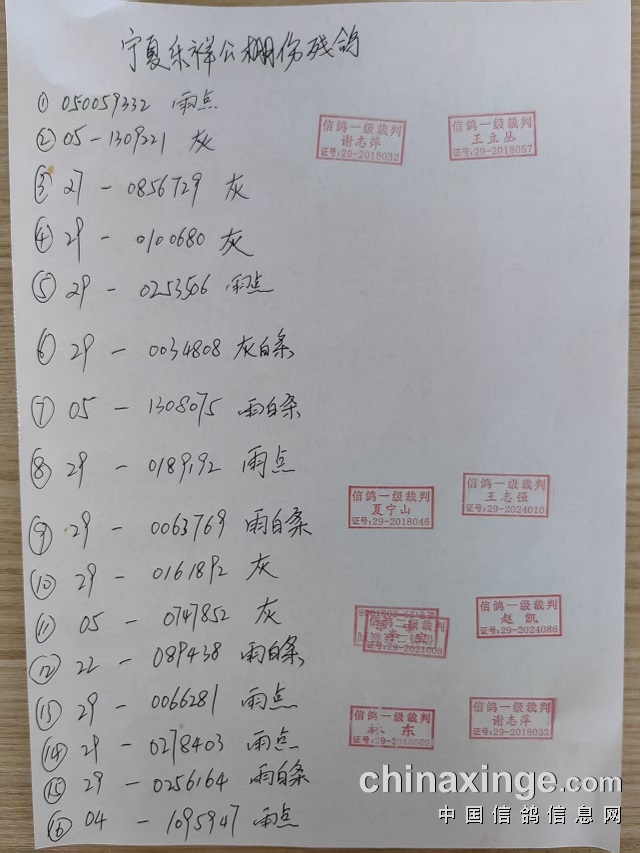 宁夏乐祥赛鸽公棚100公里收费站伤残鸽名单