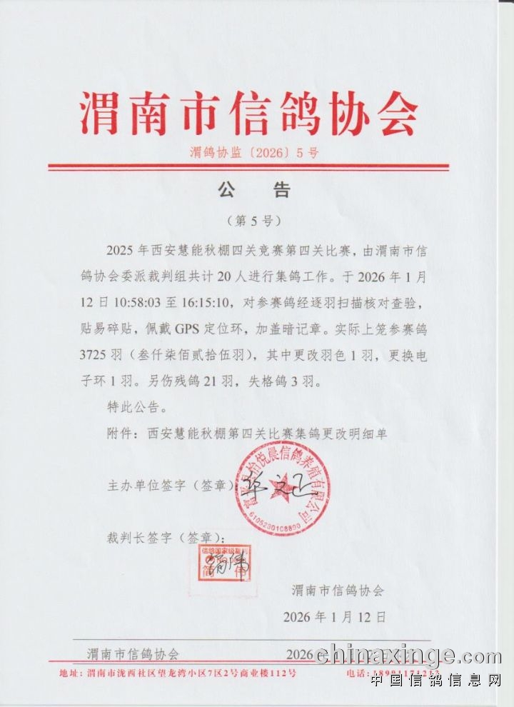 渭南市信鸽协会公告