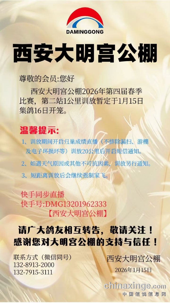 西安大明宫公棚-1月21日赛鸽强飞