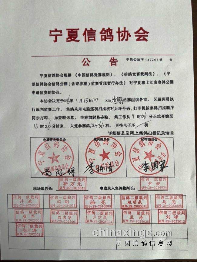 宁夏信鸽协会公告