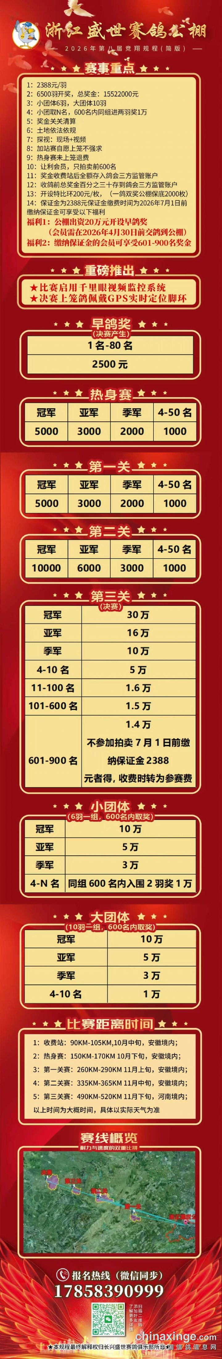 2026年浙江盛世赛鸽公棚秋赛收鸽公告