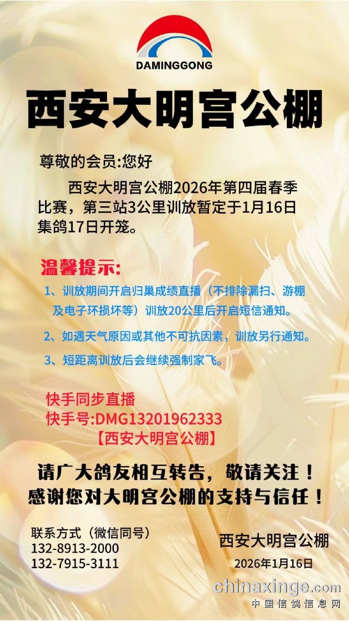 西安大明宫公棚第三站3公里训放数据直播(不含漏扫、游棚及电子环损坏)