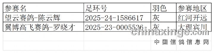 云南玉溪玉活秋棚2025年第二届加站赛获奖鸽查看链接