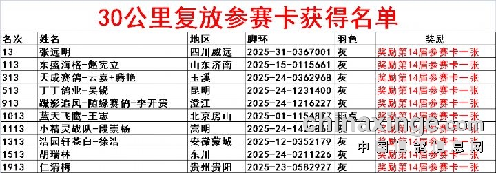 30公里训放参赛卡获得名单