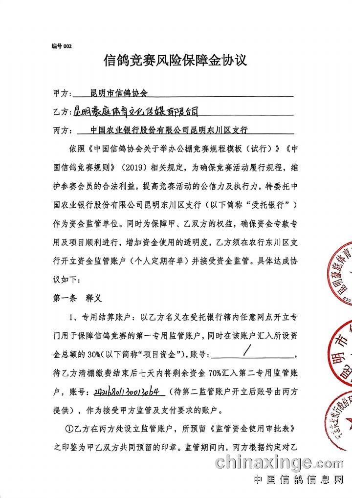 我中心2026年(第八届)春赛总奖金14155000元剩余的70%(即980万元),今日已同昆明市信鸽协会工作人员一起办理资金监管,至此2026年第八届春赛总奖金已全部监管完毕,以下是图文纪实,请大家放心参赛!