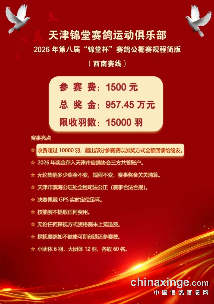 天津锦堂公棚2026年第八届秋赛规程(简版)