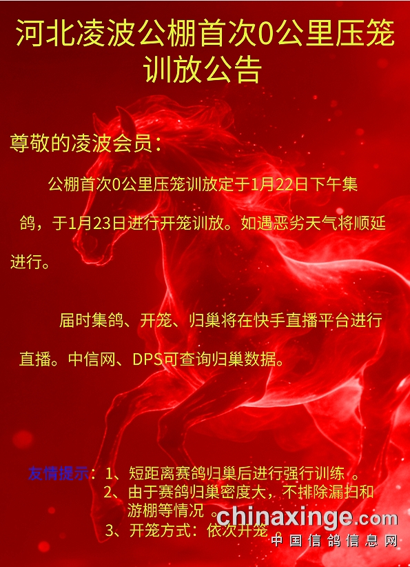 河北凌波公棚:首次0公里压笼训放公告