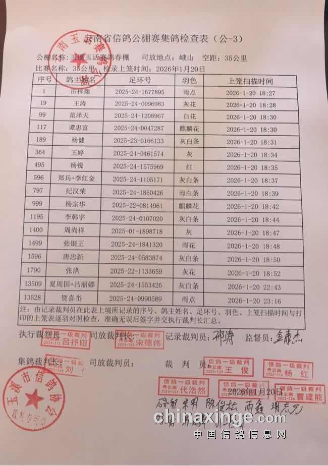 云南玉活(春棚):35公里自愿追加赛鸽粮领取公告