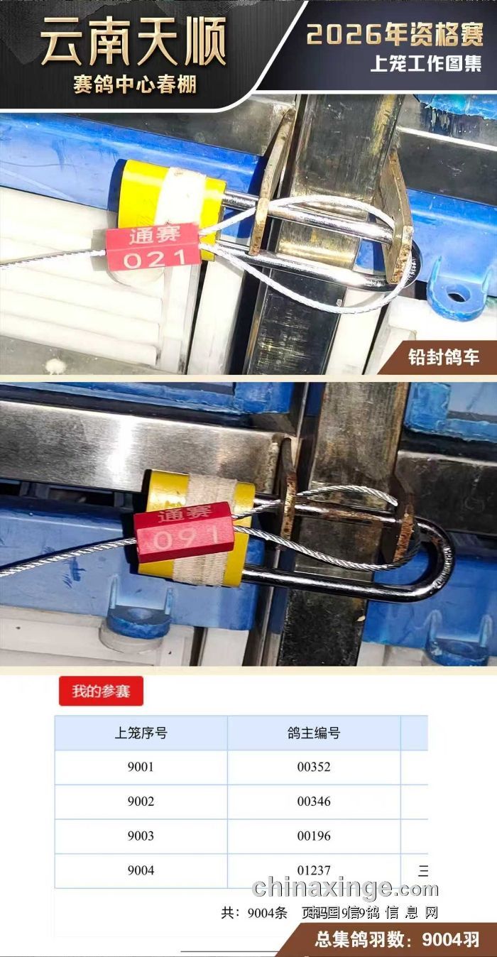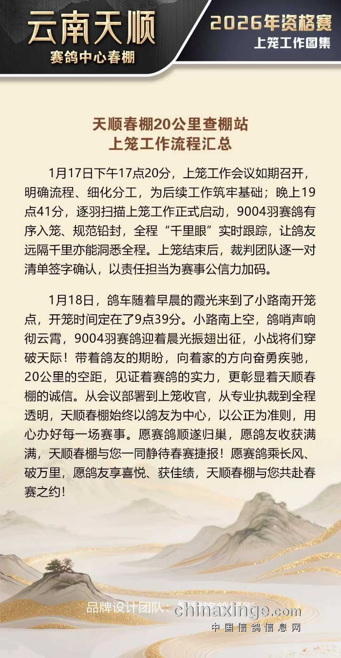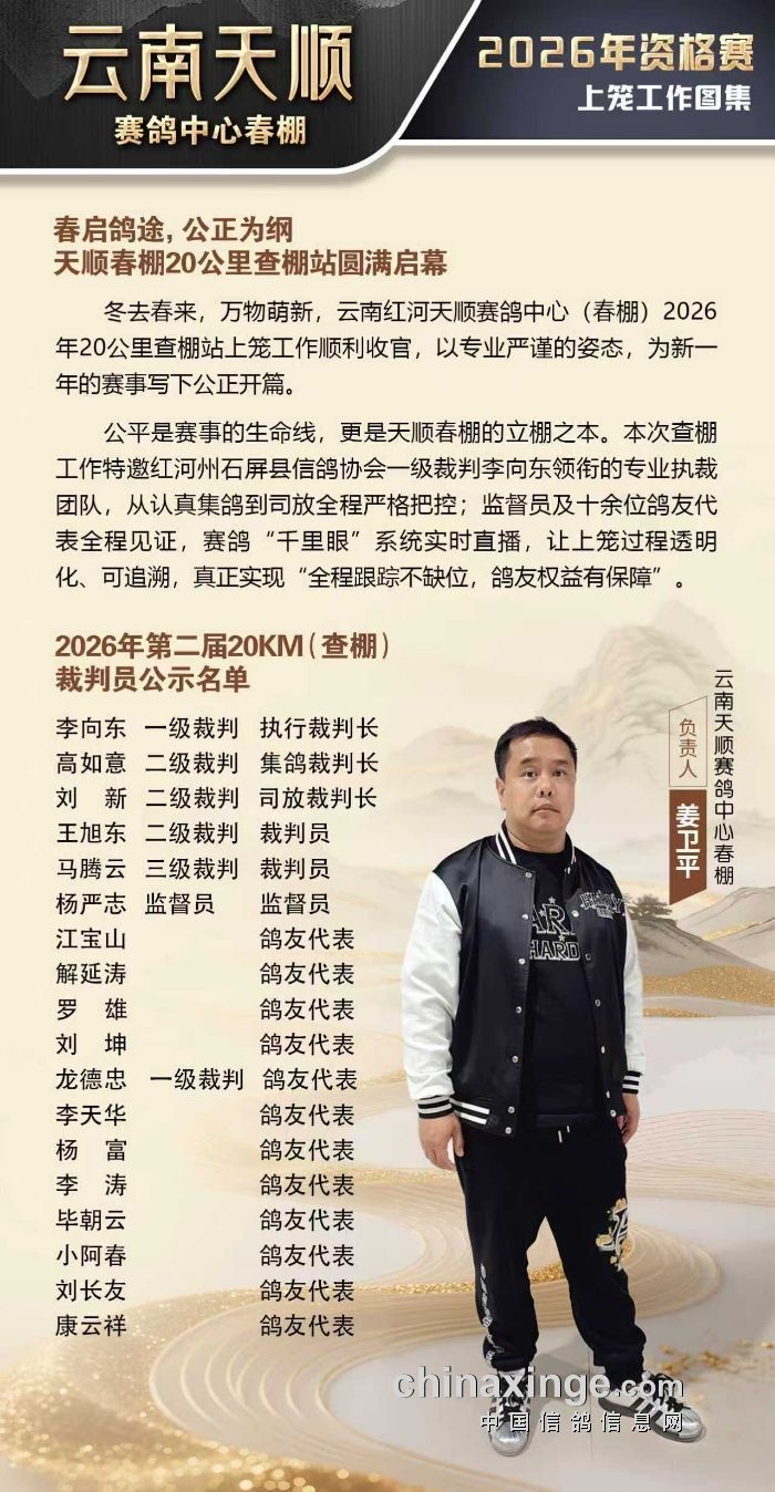 2026年云南天顺赛鸽中心(第二届)20公里查棚站自愿追加赛核对公告
