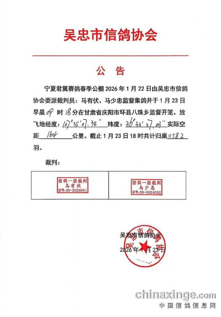 宁夏吴忠市信鸽协会公告