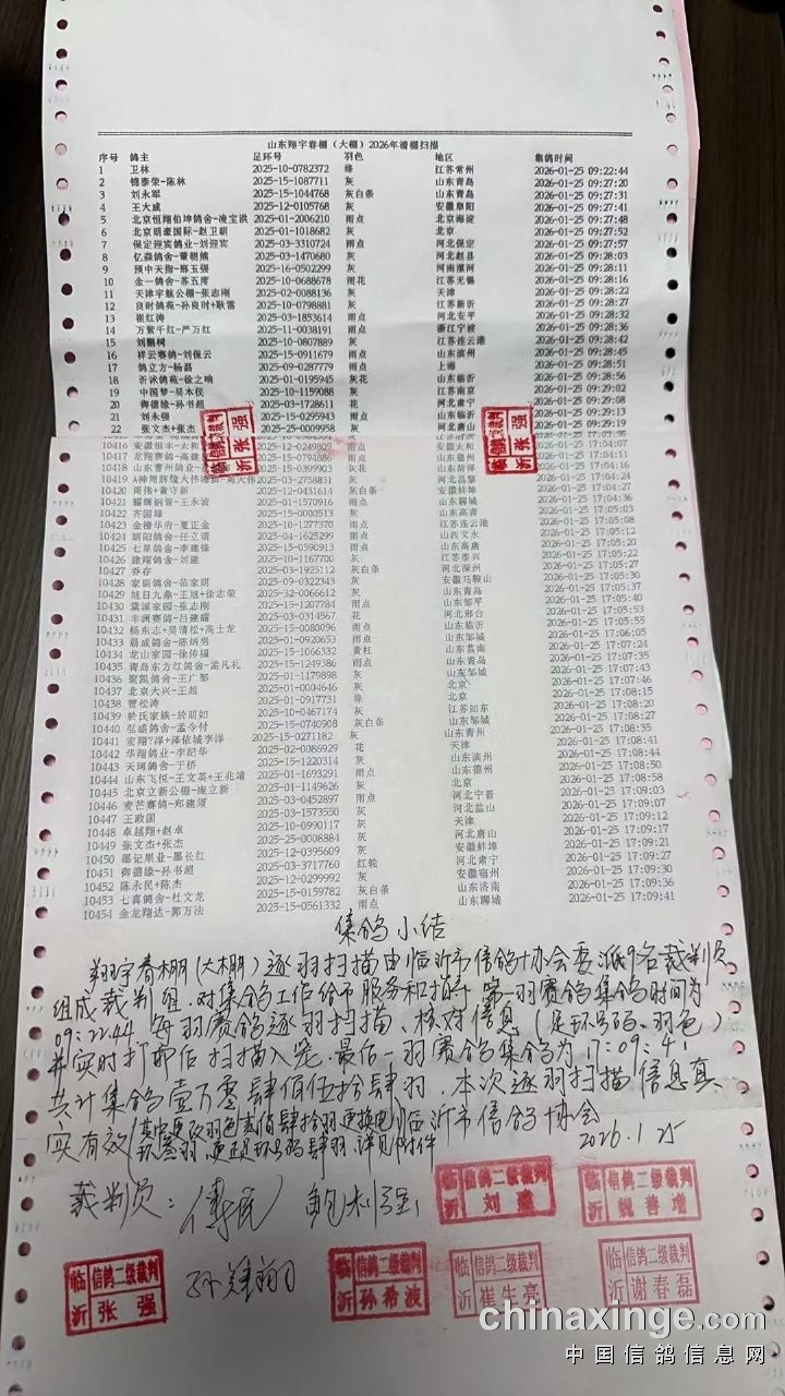 山东翔宇春棚(大棚)2026年逐羽清棚扫描集鸽小结