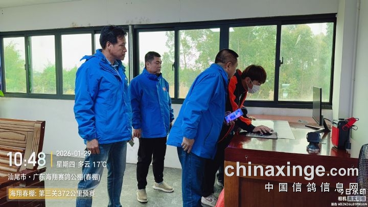 归巢前裁判组及工作人员对扫描设备进行检查