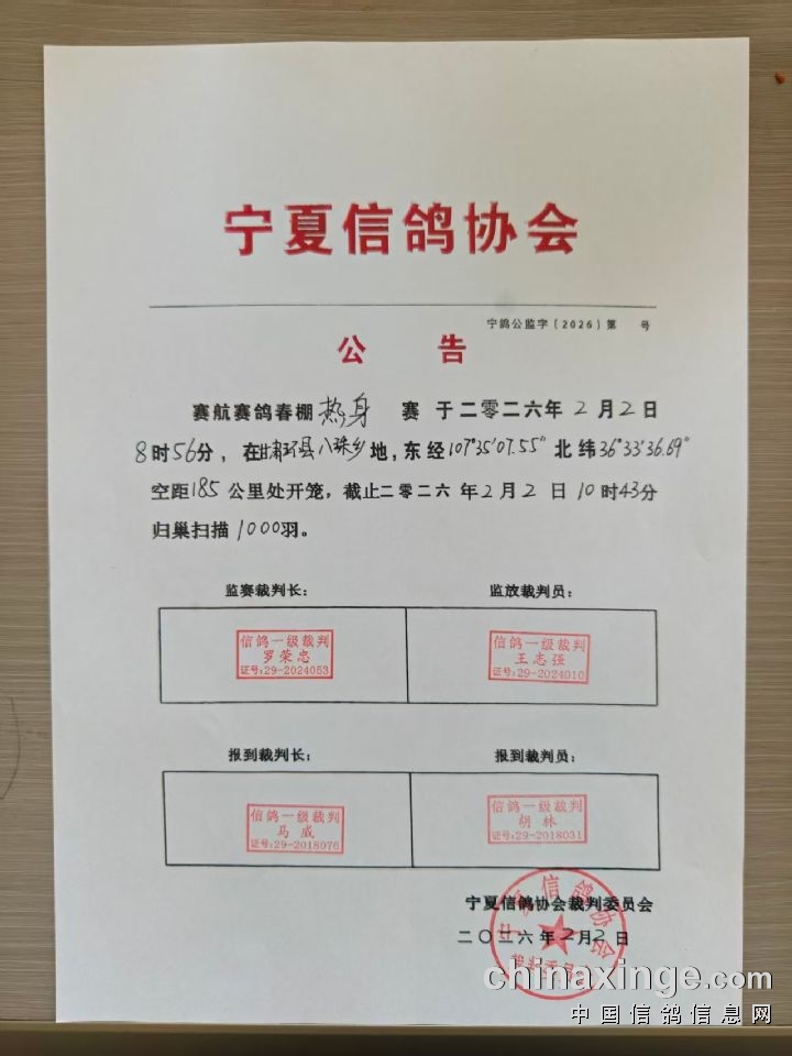 宁夏赛航赛鸽公棚热身赛奖金已发放完毕公告