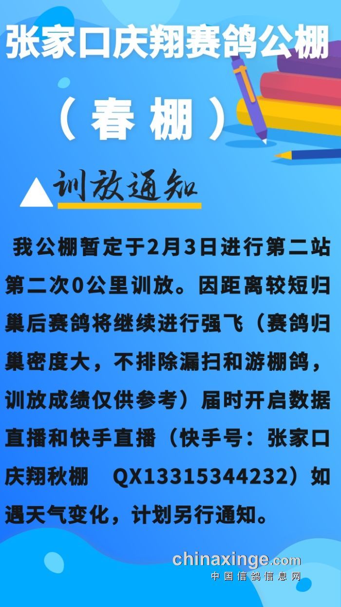 张家口庆翔公棚(春棚)第二站第二次0公里训放通知
