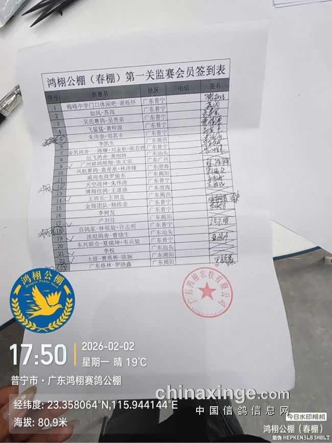 广东鸿栩(春棚)2026年首届春季四关赛160-200公里第一关热身赛铅封照片合集