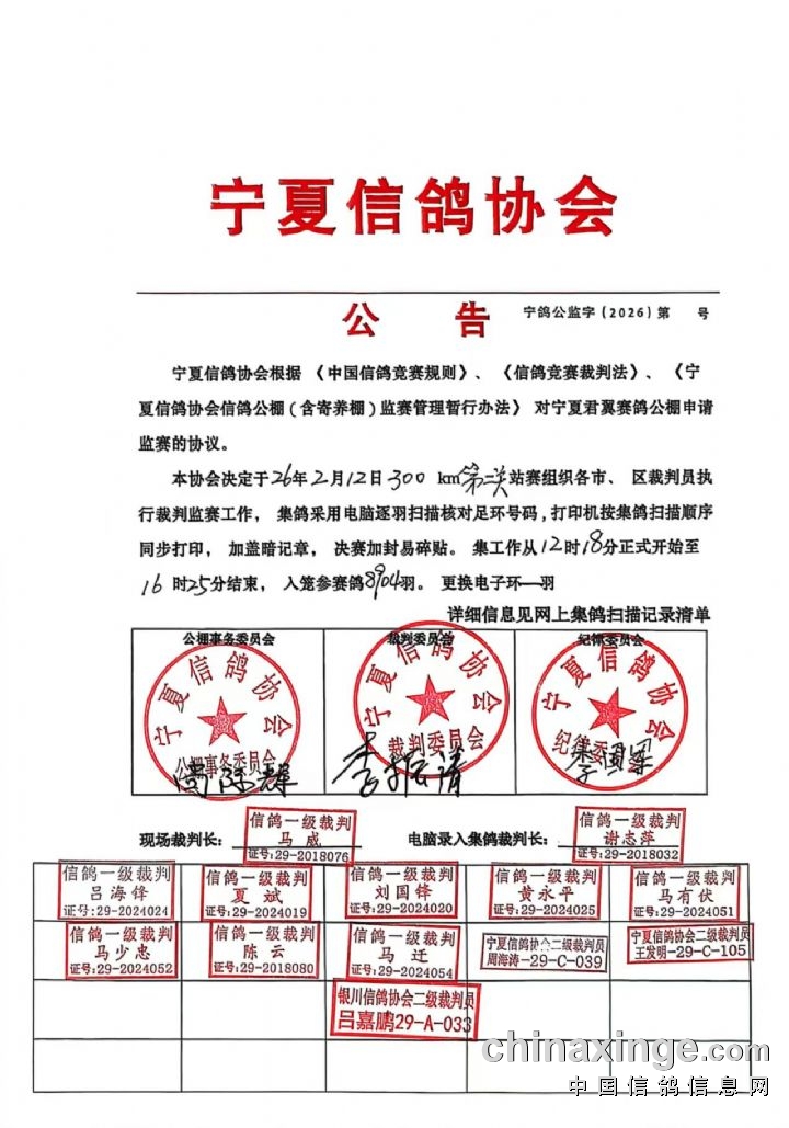 宁夏信鸽协会公告