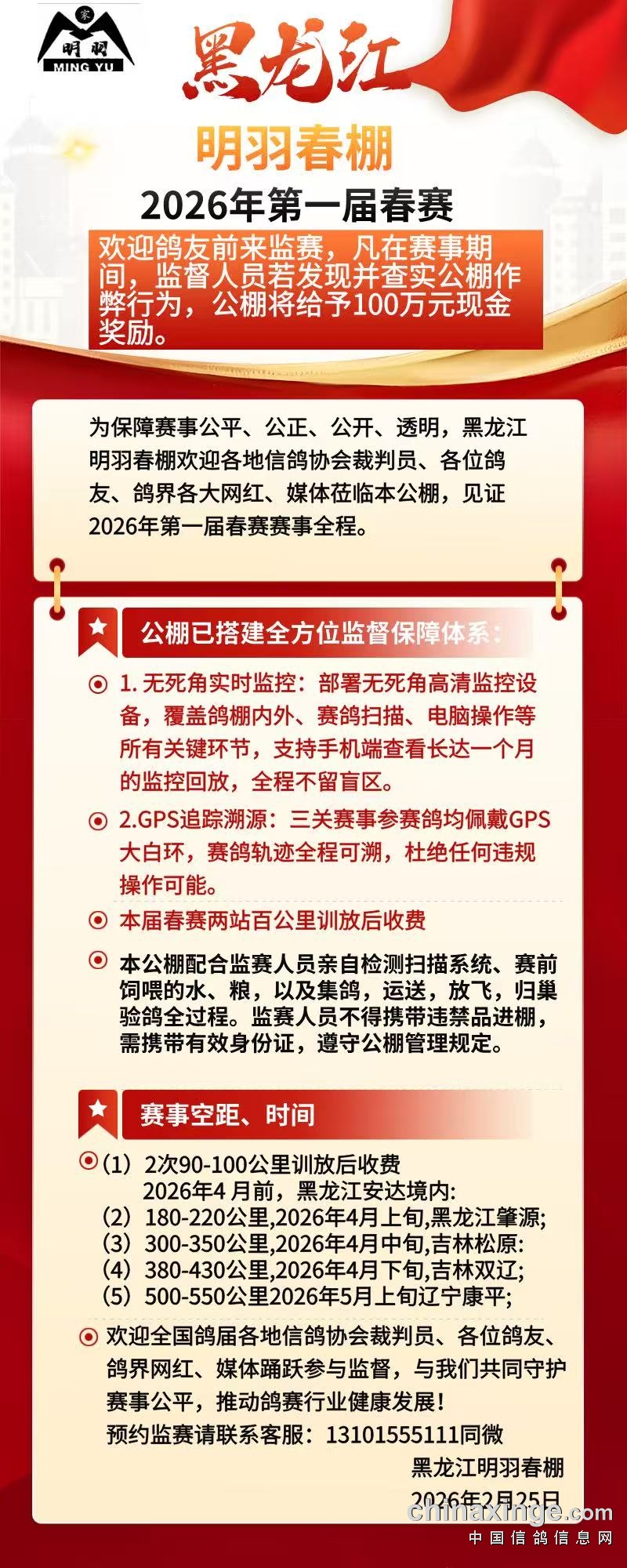 黑龙江明羽春棚2026年第一届春赛邀约监赛公告