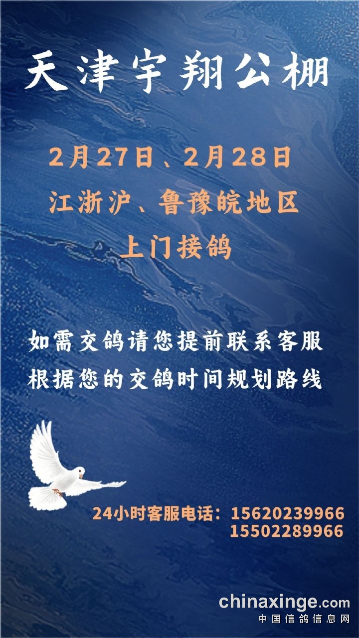 天津宇翔:江浙沪、鲁豫皖地区接鸽公告