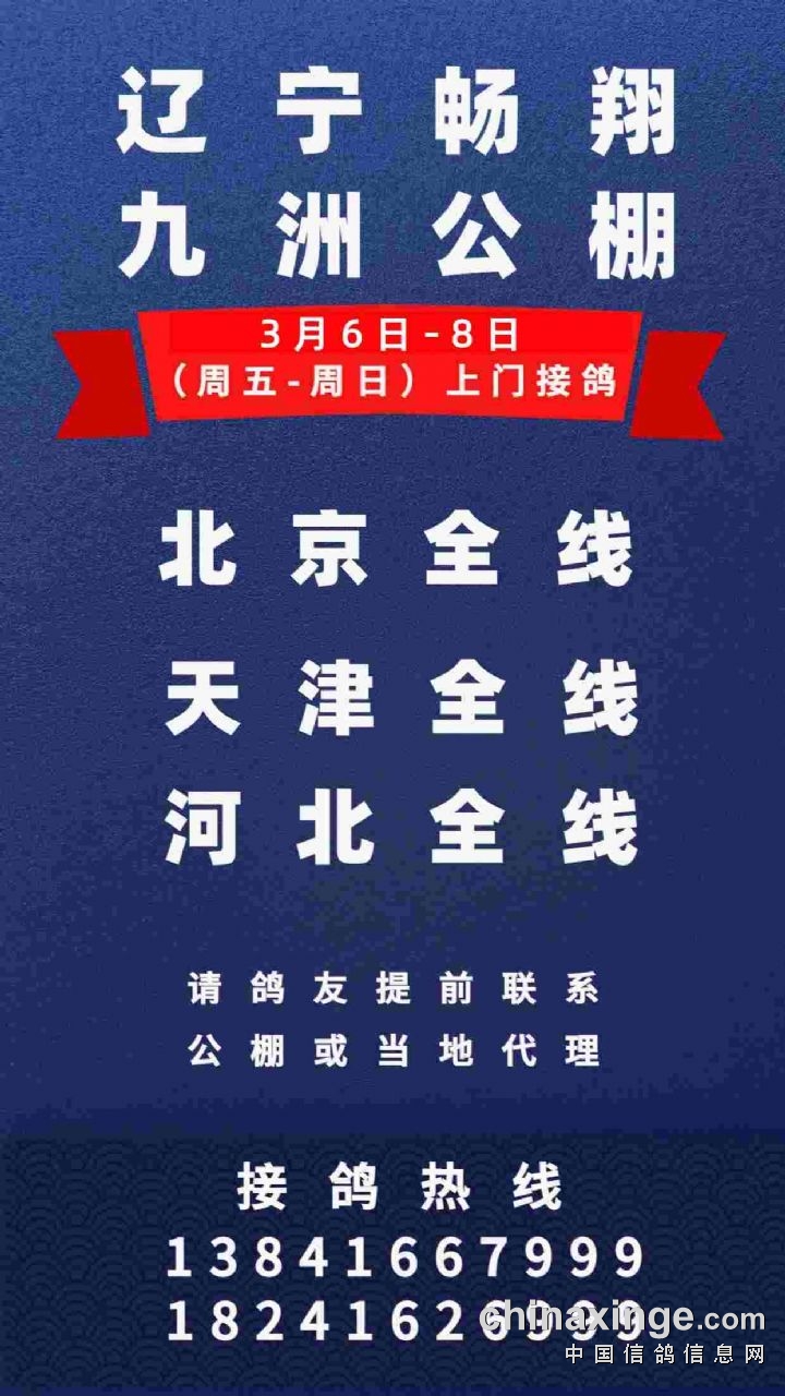 辽宁畅翔九洲赛鸽公棚接鸽公告(每日接鸽)