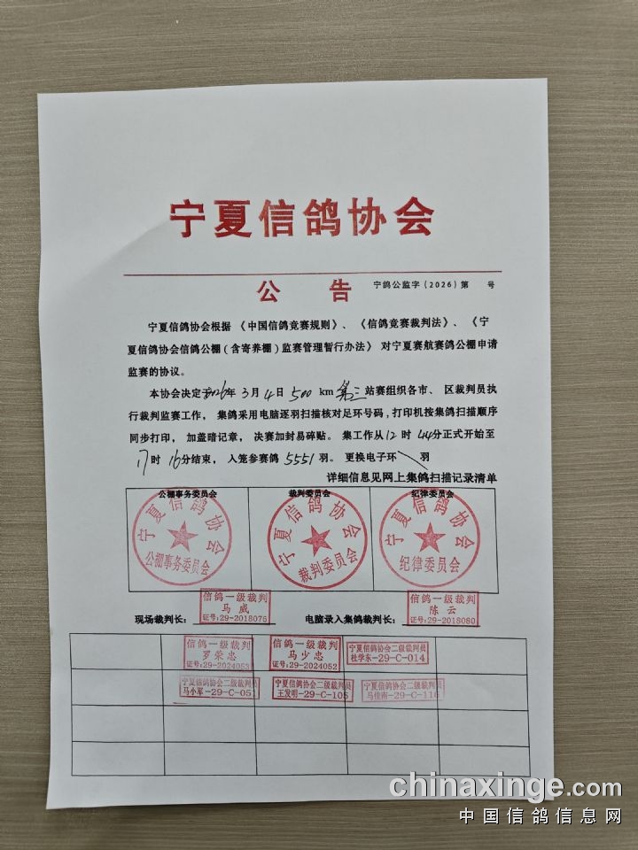 宁夏信鸽协会公告