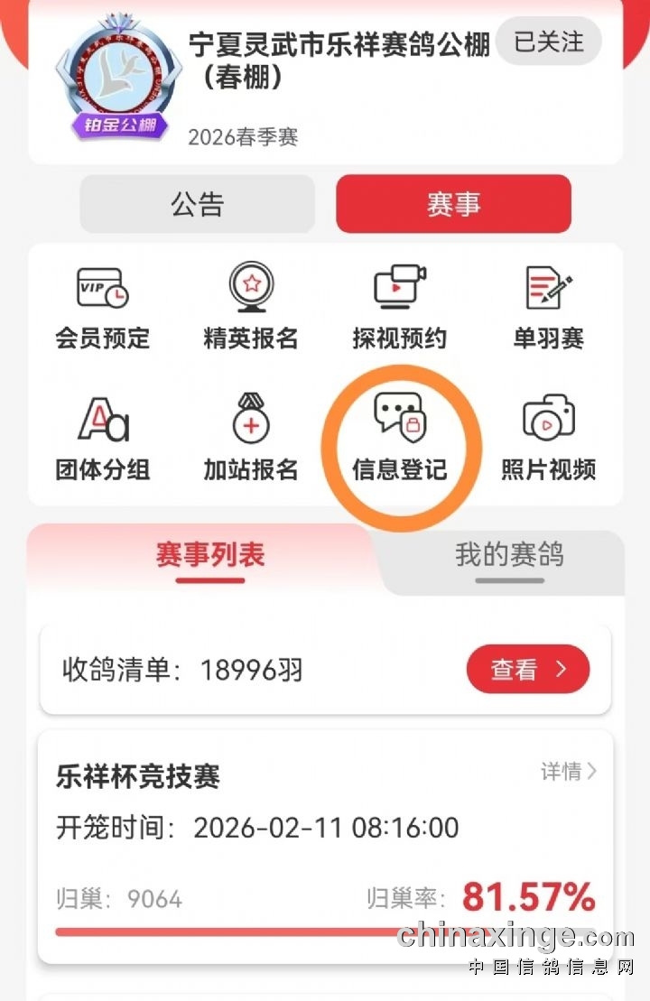 我公棚第三关500公里比赛赛事已结束,请获奖会员尽快用公棚预留手机号登陆DPS软件搜索“宁夏乐祥赛鸽公棚”点开点击“信息登记”填写收款信息,(银行卡号、开户行、持卡人姓名、本棚参赛名)银行卡优先填写中国农业银行,如有疑问尽快联系我棚财务谢谢!