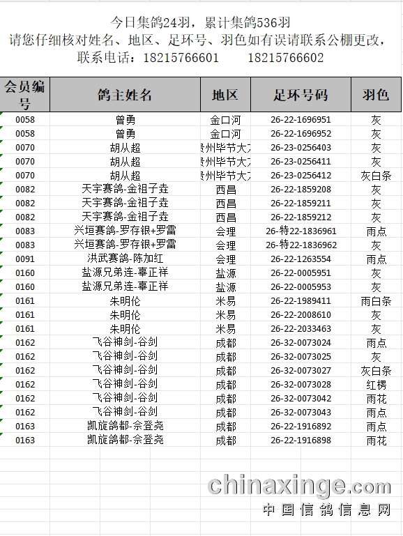 提示:如果此页面是训放清单,要想快速查询鸽环号,请按