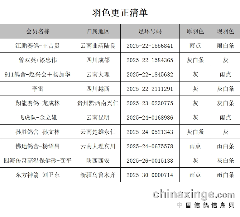 2026年天南铜都(春棚)第二关归巢受伤鸽清单