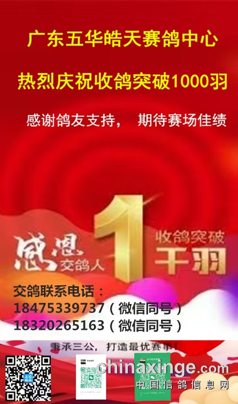 广东五华皓天赛鸽中心全体同仁恭祝广大鸽友除夕快乐,新春大吉!