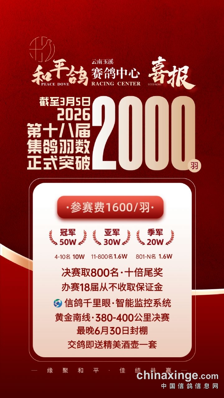 [喜报]和平鸽2026集鸽羽数突破2000羽!
