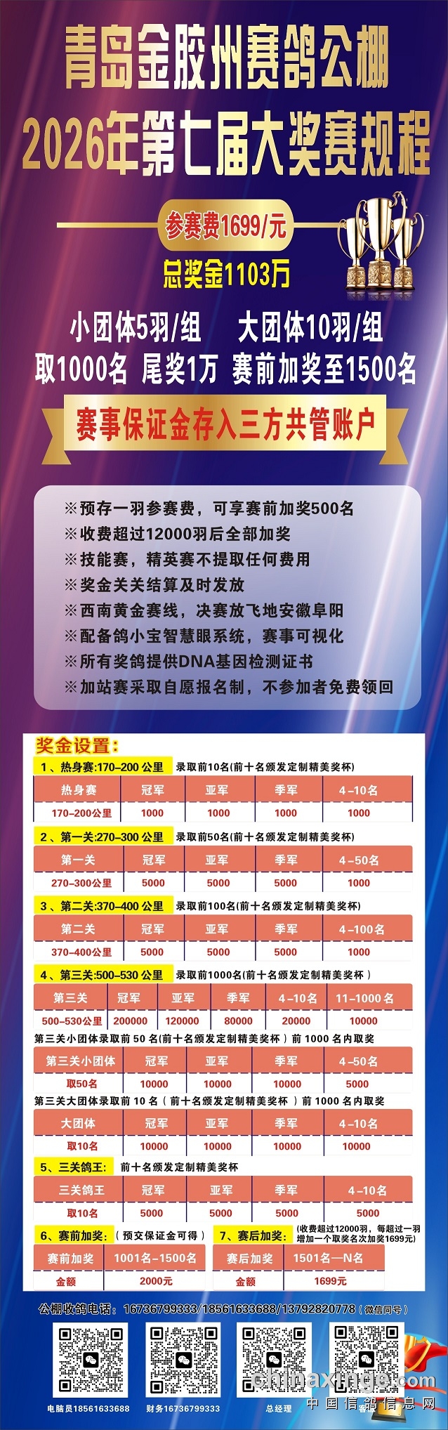 青岛金胶州秋棚第七届收鸽清单