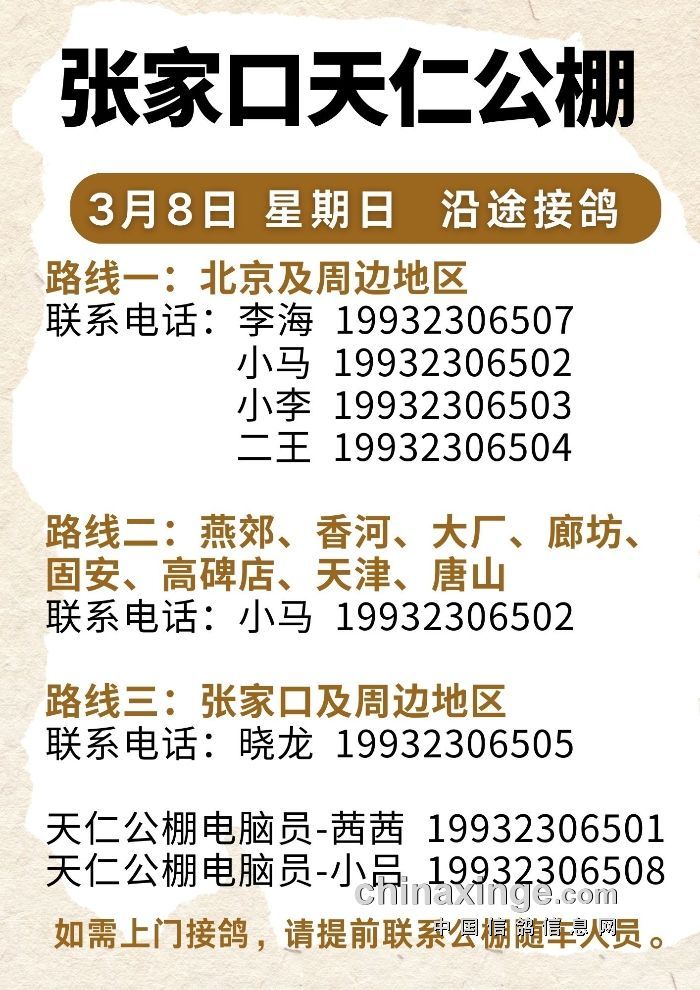 河北张家口天仁赛鸽公棚2026年秋赛会员预定