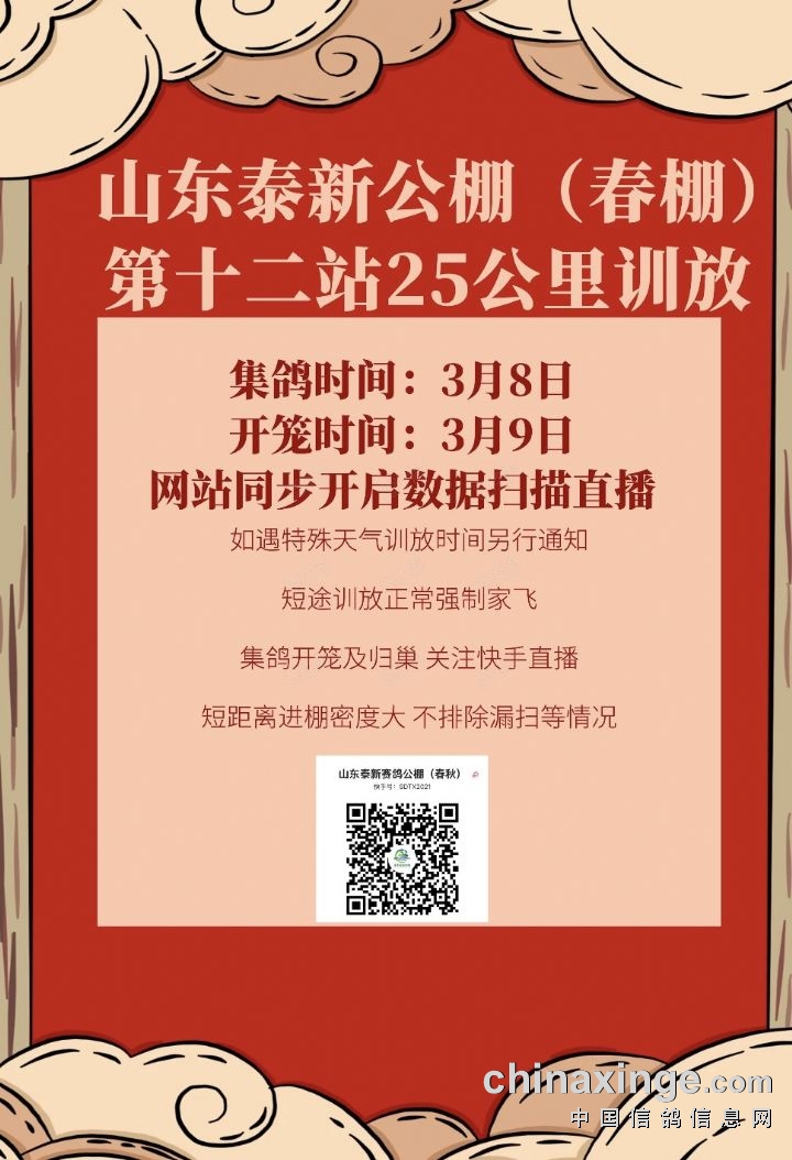 山东泰新赛鸽公棚(春棚)3月4日家飞扫描直播链接