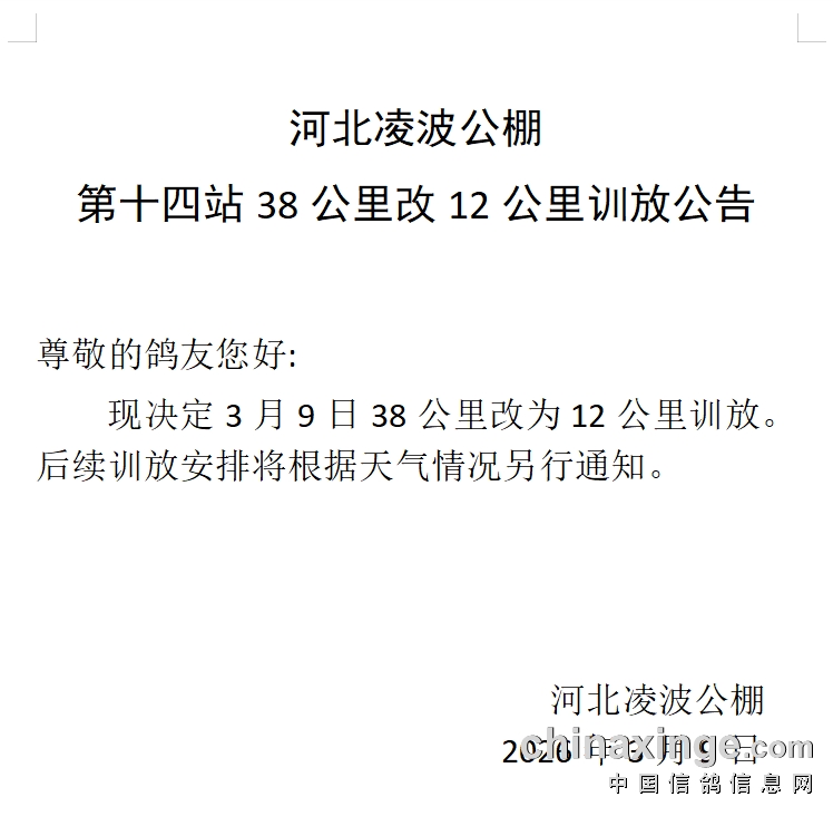 河北凌波公棚:第十四站38公里改为12公里训放公告