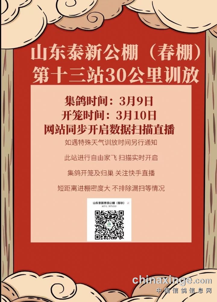 山东泰新赛鸽公棚(春棚)3月4日家飞扫描直播链接