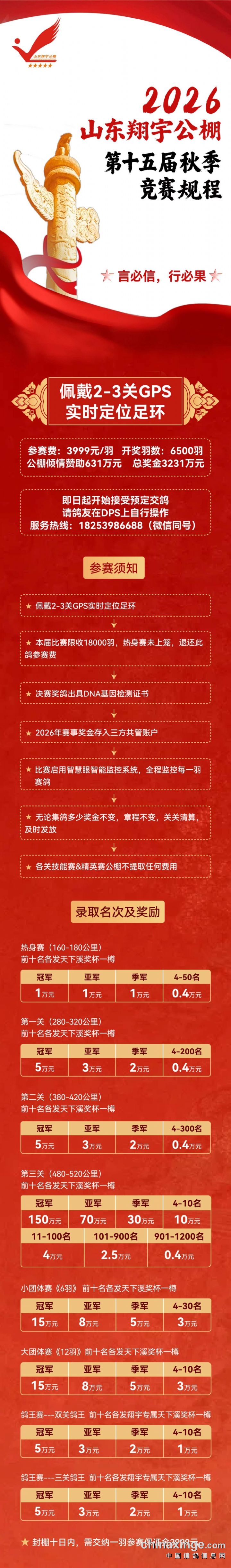 山东翔宇秋棚2026年第十五届收鸽清单(更新中)