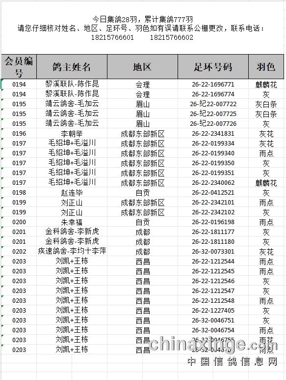 提示:如果此页面是训放清单,要想快速查询鸽环号,请按