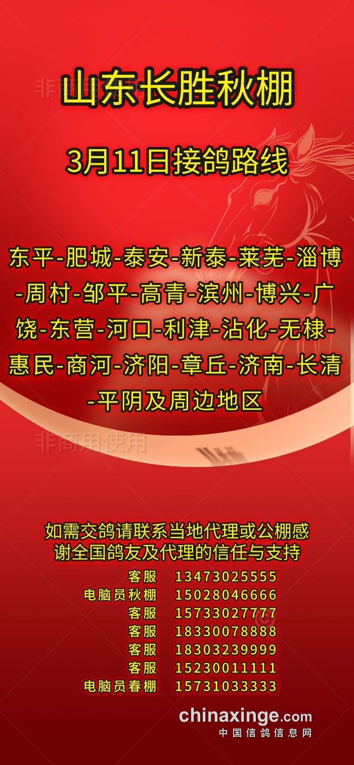 山东长胜秋棚3月11日接鸽路线