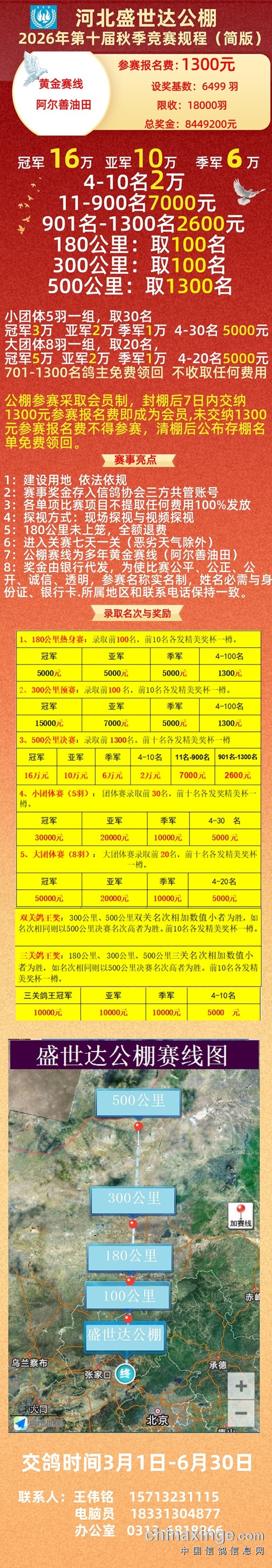 河北张家口盛世达公棚2026年第十届秋季竞赛规程(简版)
