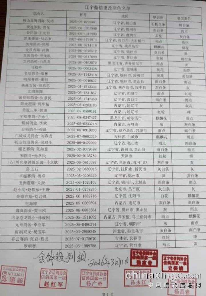 辽宁鼎信春棚:100公里收费站更改羽色名单