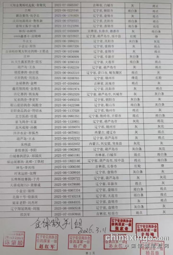 辽宁鼎信春棚:第十一次60公里训放扫描数据清单(不排除漏扫,游棚和电子环损坏)