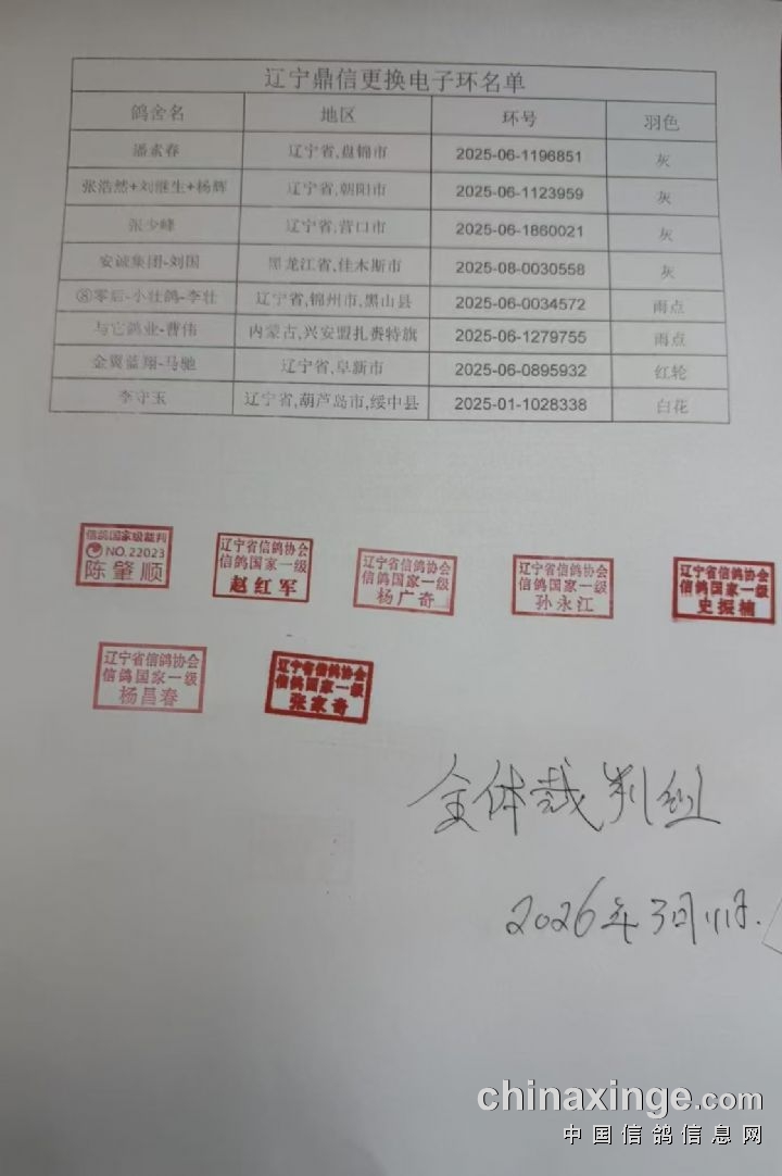 辽宁鼎信春棚:第十一次60公里训放扫描数据清单(不排除漏扫,游棚和电子环损坏)